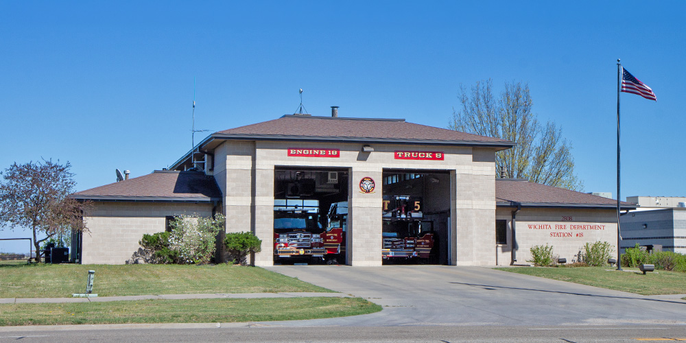 Station 18 was built in 1998. Station 18 faces west and is south of 29th St. N. on Webb Rd. Station 18 houses Engine 18 and as of June 1, 2019 Truck 5.